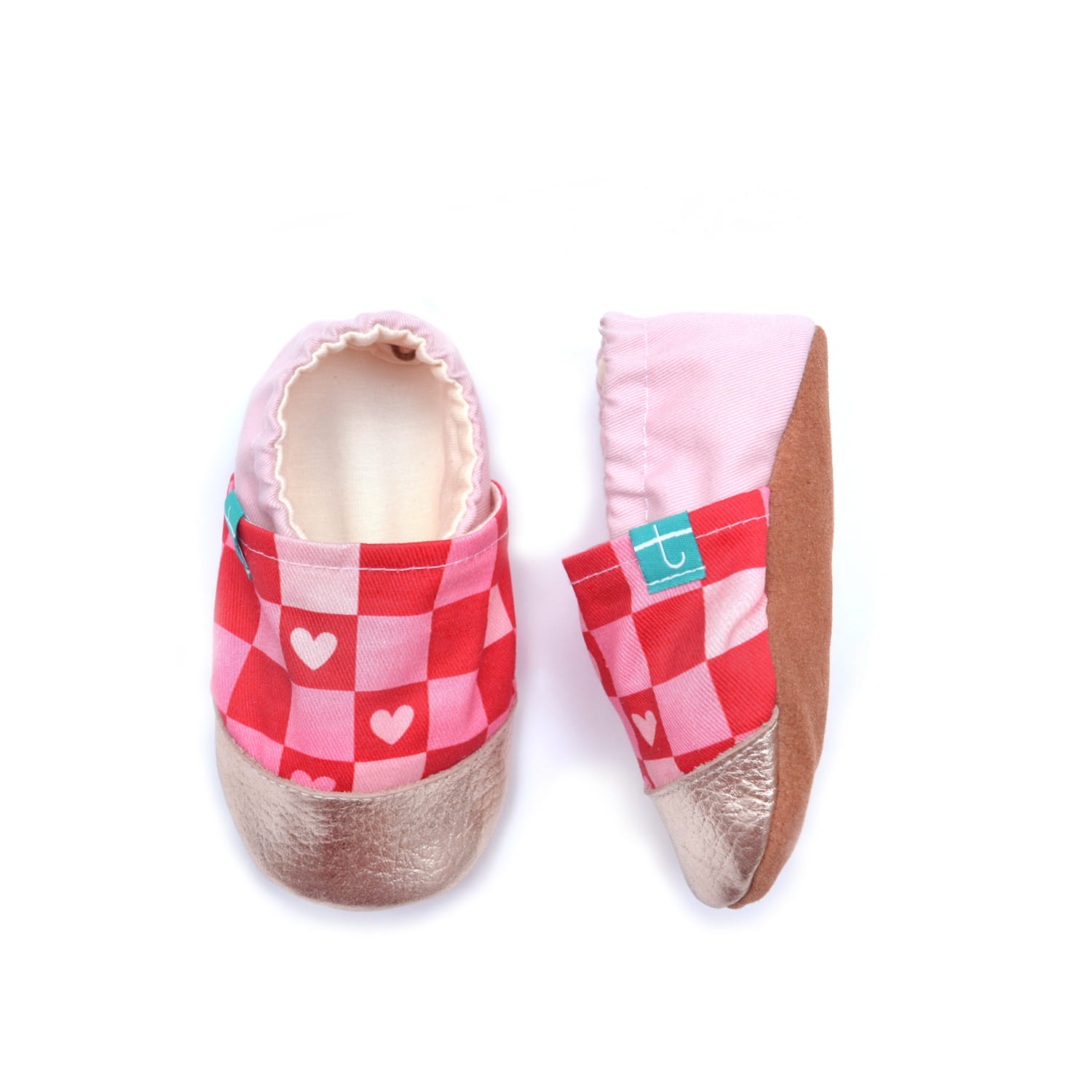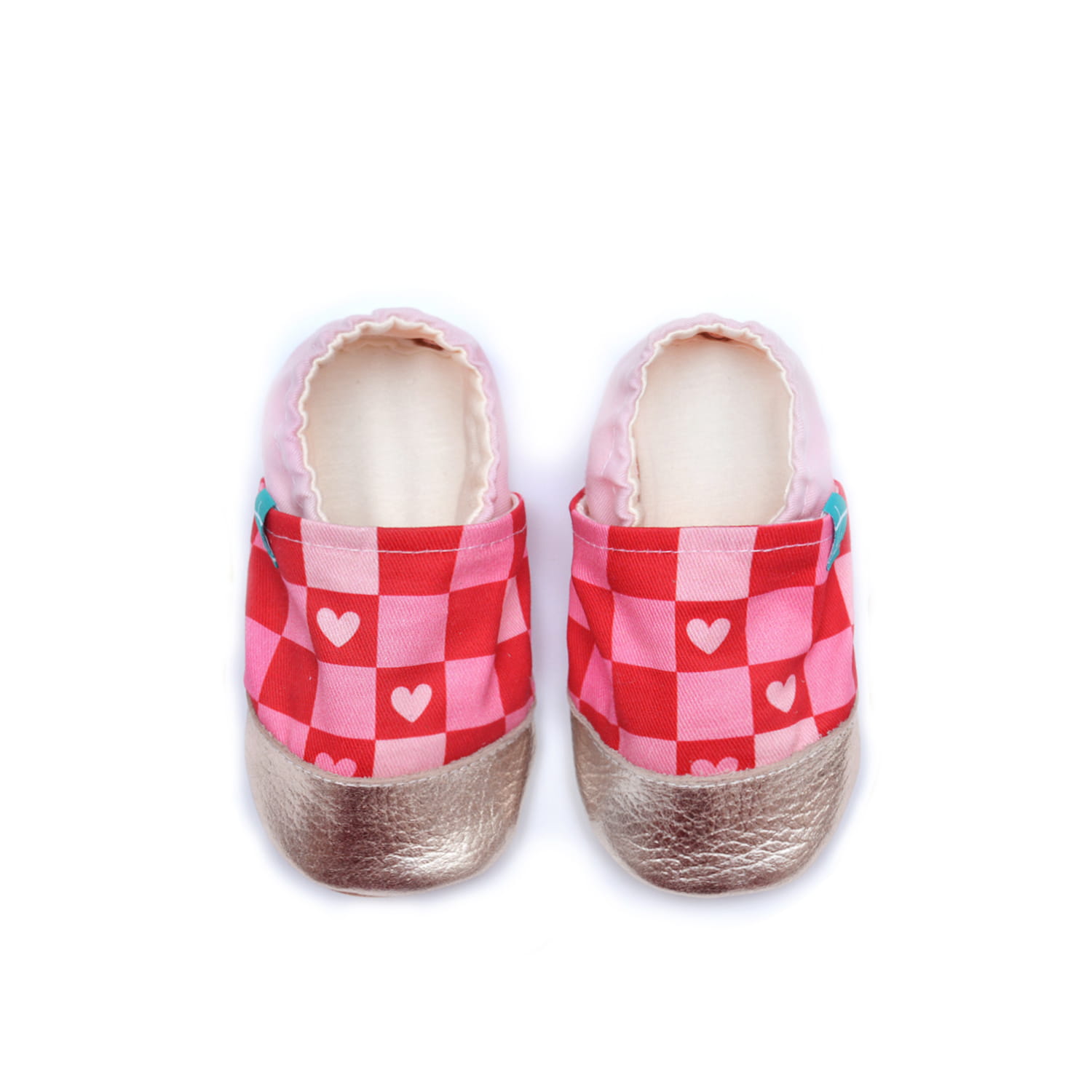 Podaruj swojemu dziecku komfort, który idzie w parze z unikalnym stylem! Nasz model Sweet Hearts to walentynkowa propozycja, która skradnie serca małych i dużych. Oryginalny wzór szachownicy z delikatnymi serduszkami został dopełniony lśniącym, złotym noskiem oraz jasnoróżową piętką. To kapcie, które dodadzą blasku każdej domowej i przedszkolnej stylizacji.