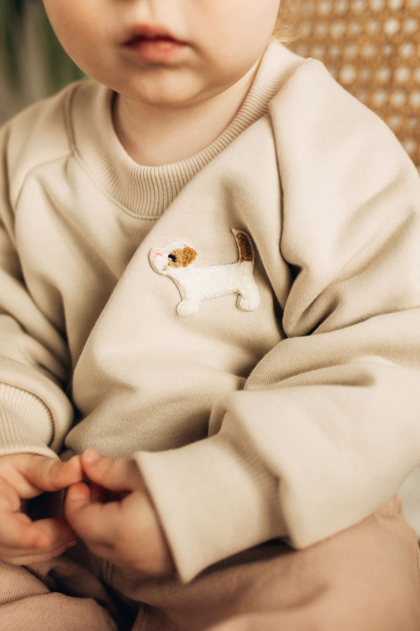 Rozmiar 74 cm - Bluza Dziecięca White Owl | Jasny Beż z Naszywką Psa | TITOT